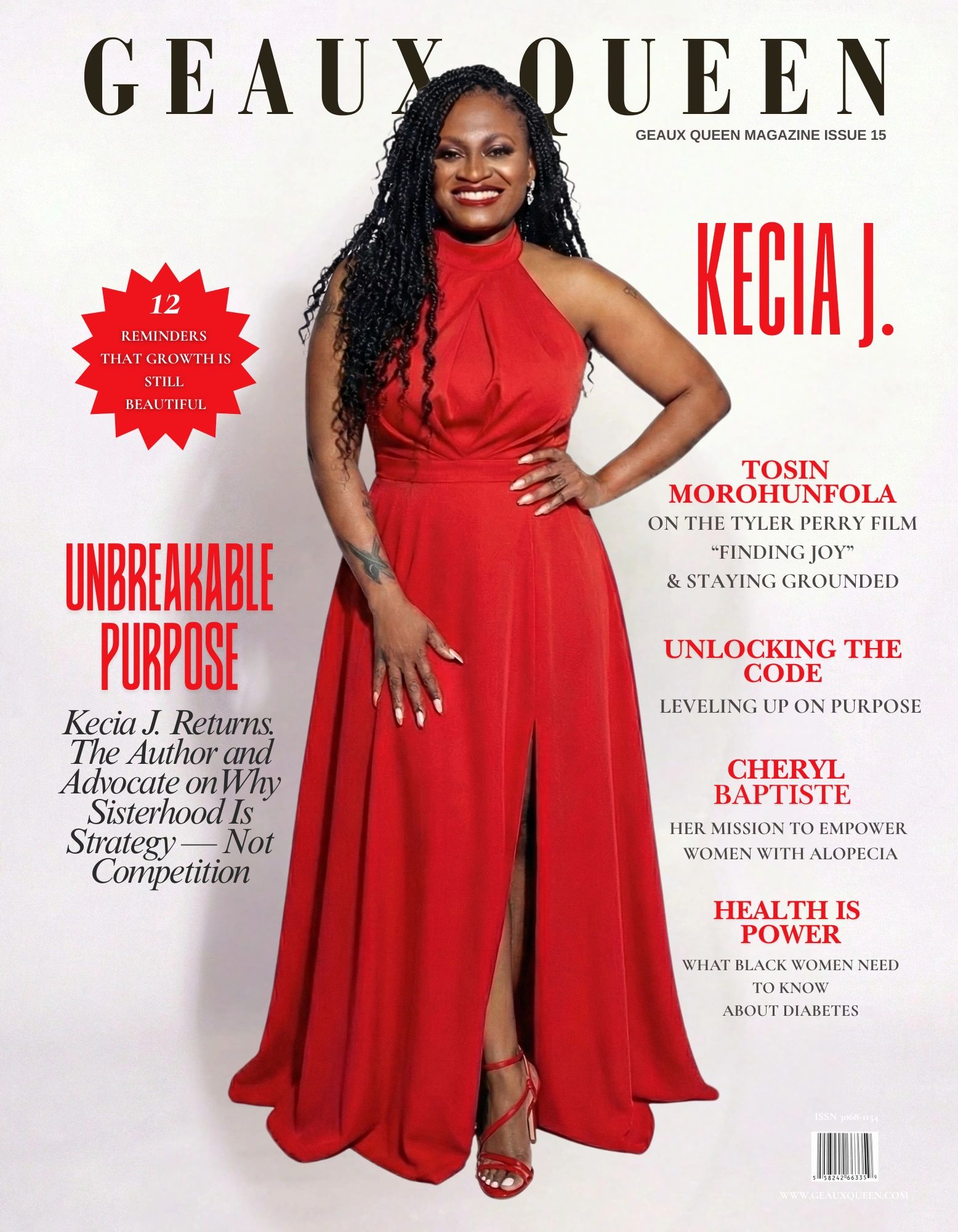 Kecia J. returns to the cover of Geaux Queen Magazine in a powerful issue centered on unbreakable purpose, healing, and the truth that sisterhood is strategy, not competition.